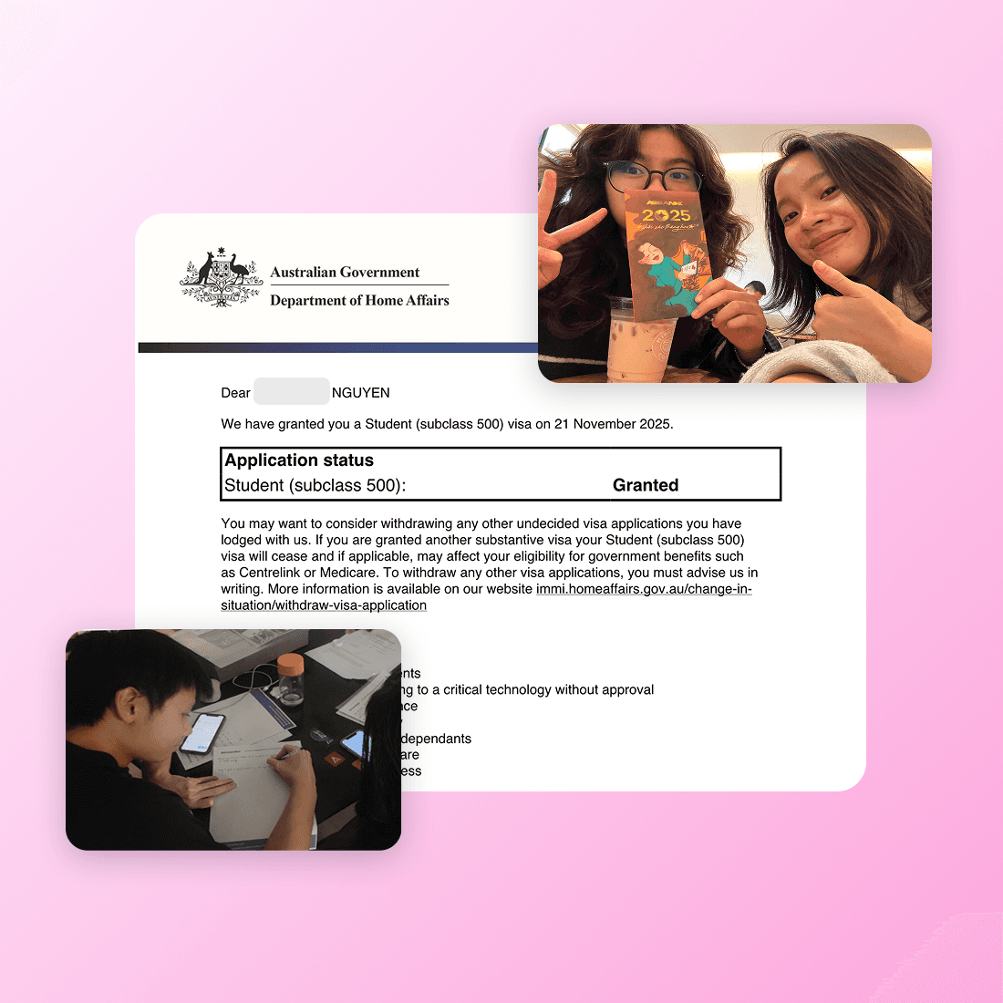 Chuyên viên hỗ trợ các thủ tục, giấy tờ cần thiết để học sinh nhận visa và nhập học thành công. Tỉ lệ đỗ visa hiện tại của Arrowster là 100%