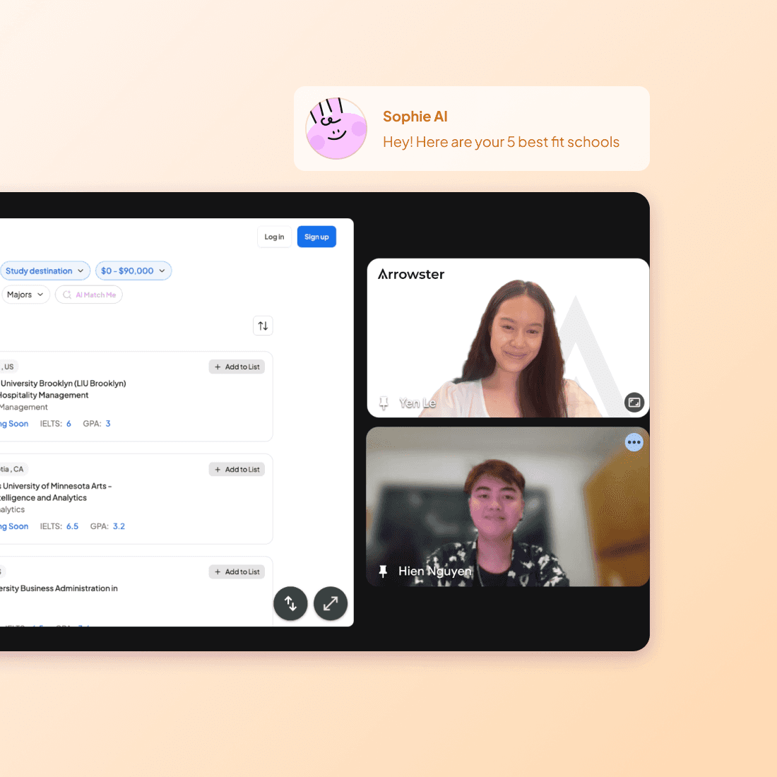 Arrowster là cộng đồng du học sinh đã học tại các trường top trên thế giới, đang cùng nhau hỗ trợ thế hệ sau có hành trình du học rõ ràng và tự tin.