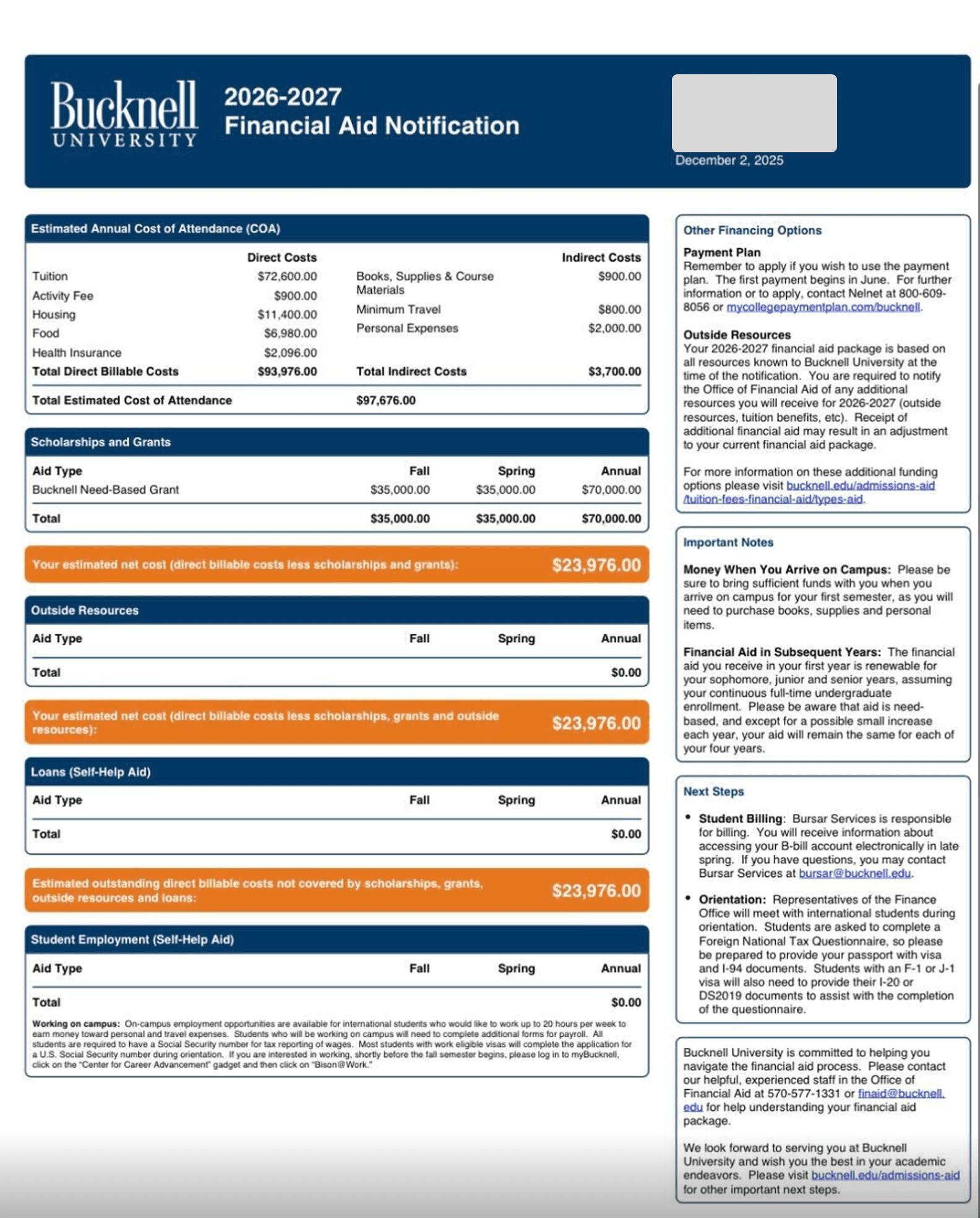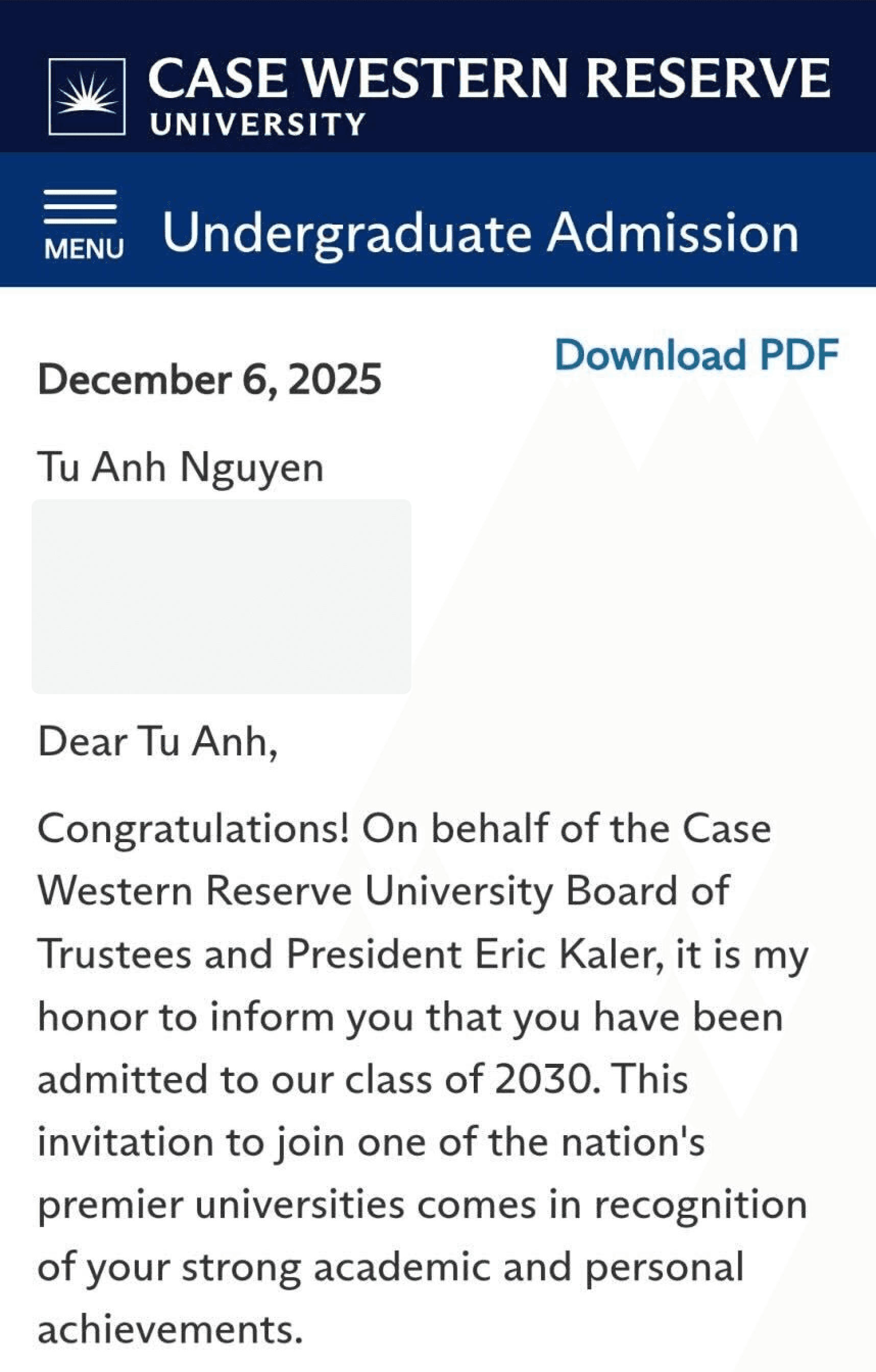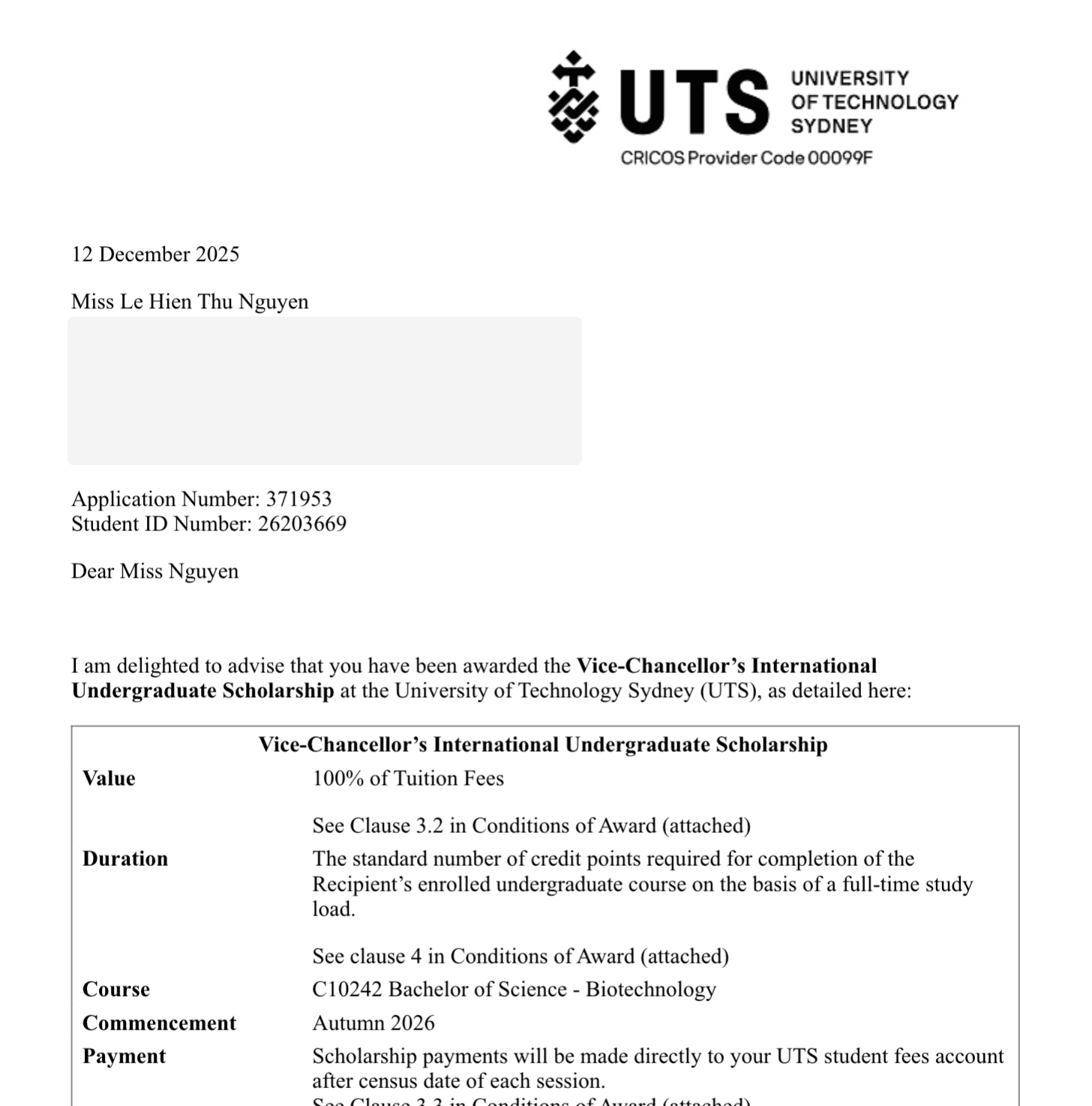 thư nhập học và học bổng được cấp trên toàn thế giới
